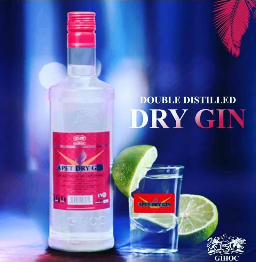Completely fermented palm wine is treated and distilled twice to remove off odour, taste and undesired fermentation by-prod-ucts. The treatment and distillation process makes APET DRY GIN smooth and pleasant feel to the palates. APET DRY GIN originates from popular term " LOCAL GIN" which is Akpeteshie.